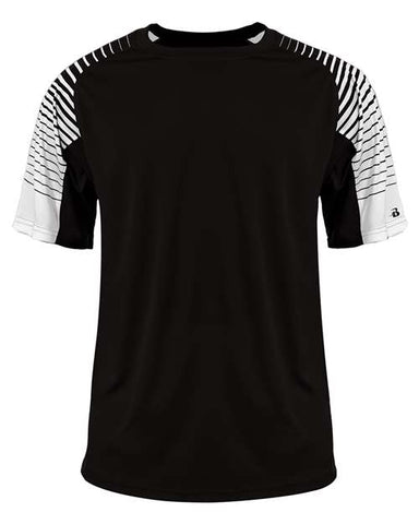 - Badger heat-seal logo on left sleeve
