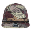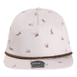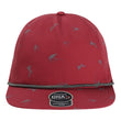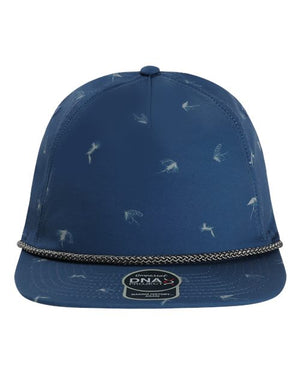 - Five-panel, mid-profile with woven rope