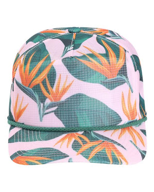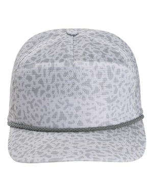 - Stand-up mesh, five-panel, mid-profile with woven rope
